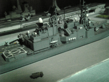 一番苦労したのはヘリ甲板のマーキングで、キットにサークル部分のデカールが